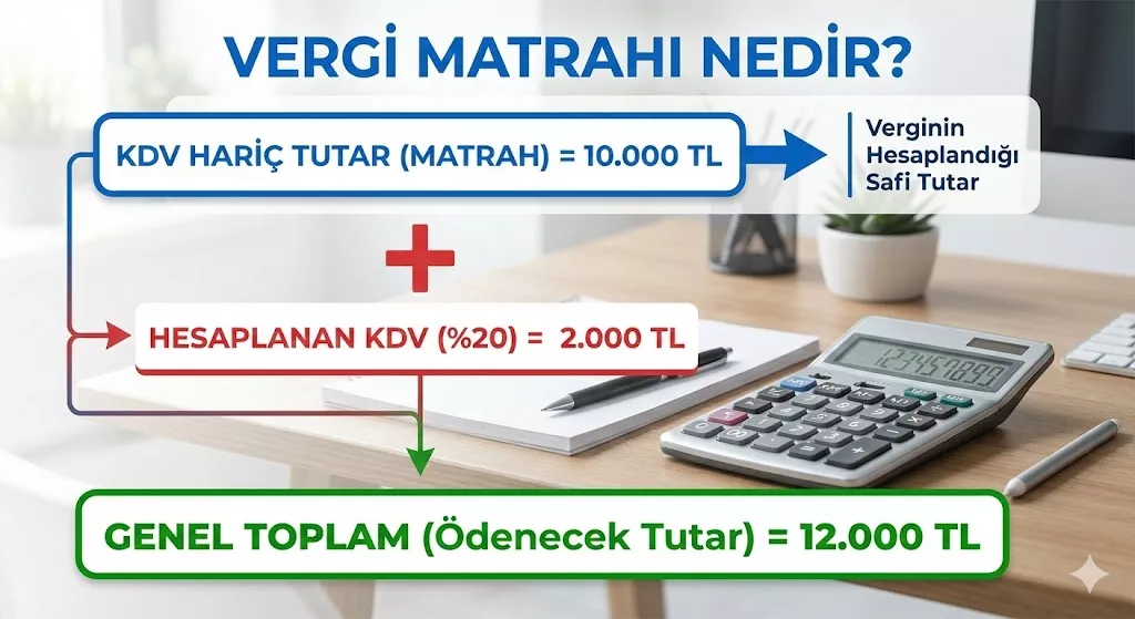 Matrah, faturanın KDV hariç safi tutarıdır. Tüm vergiler bu tutar üzerinden hesaplanır.