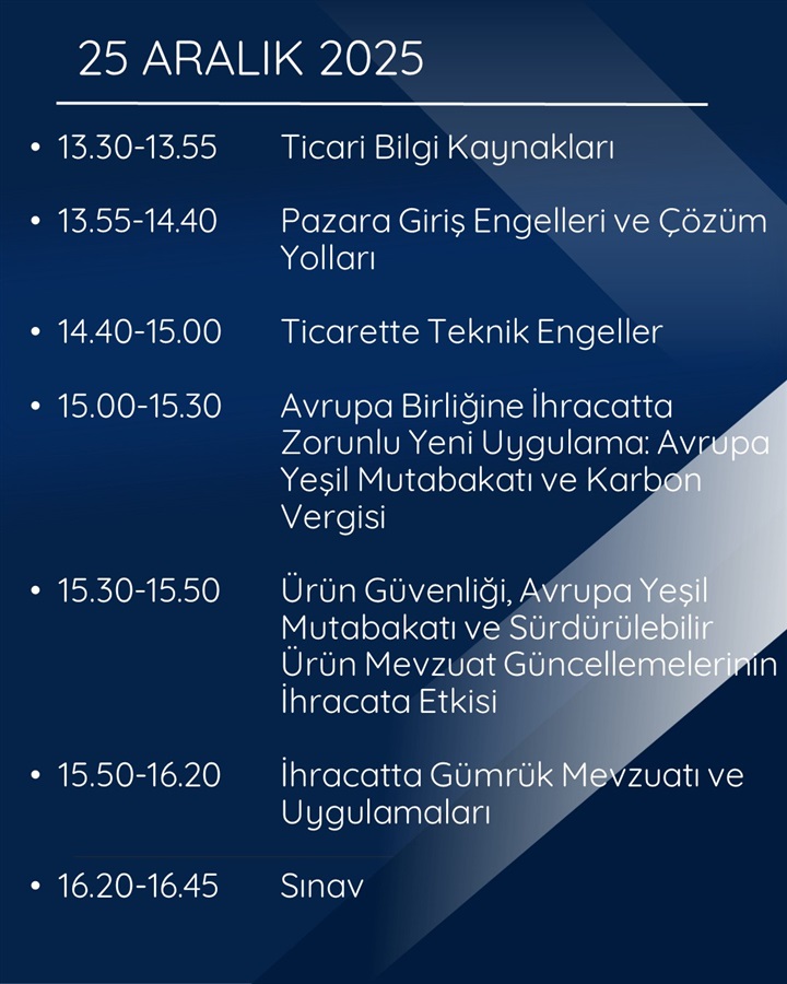 Bilgi, ticaretteki en büyük sermayedir. Ücretsiz, sınavlı ve sertifikalı bu eğitimi kaçırmayın, 2026 yılına “İhracatçı” vizyonuyla girin.